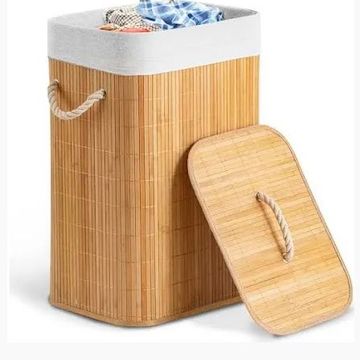Kit 3 Cestos Organizadores de Bambu Multiuso Forro Organizador Objetos