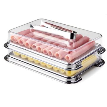 Porta Frios Duplo Inox Com Pegador Pinça Kit Casa Presunto Queijo Cozinha