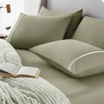 Jogo de Cama Lençol Queen 4 Pçs 600 Fios Ponto Palito Percal Peletizado