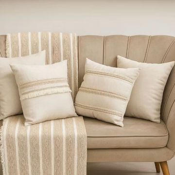 Kit 4 Almofada Linha Boho Chic 2 Lisas 2 Com Detalhes Elegante