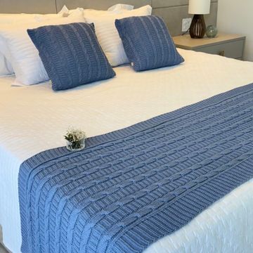 Kit Peseira Tricô Cama Queen Sofá Luxo com 2 Capas Almofada Decorativa Boho Manta Quarto Ravena