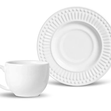 Conjunto Com 6 Xícaras De Chá Com 6 Pires Roma Branco