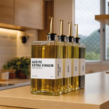 Galheteiro Quadrado de Vidro Dourado na 500ml com Bico Dosador | Gold - Azeite / Óleo