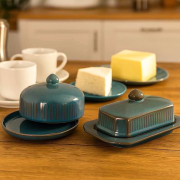 Kit Queijeira e Manteigueira Retangular Cerâmica Café da Manhã Decoração Cozinha