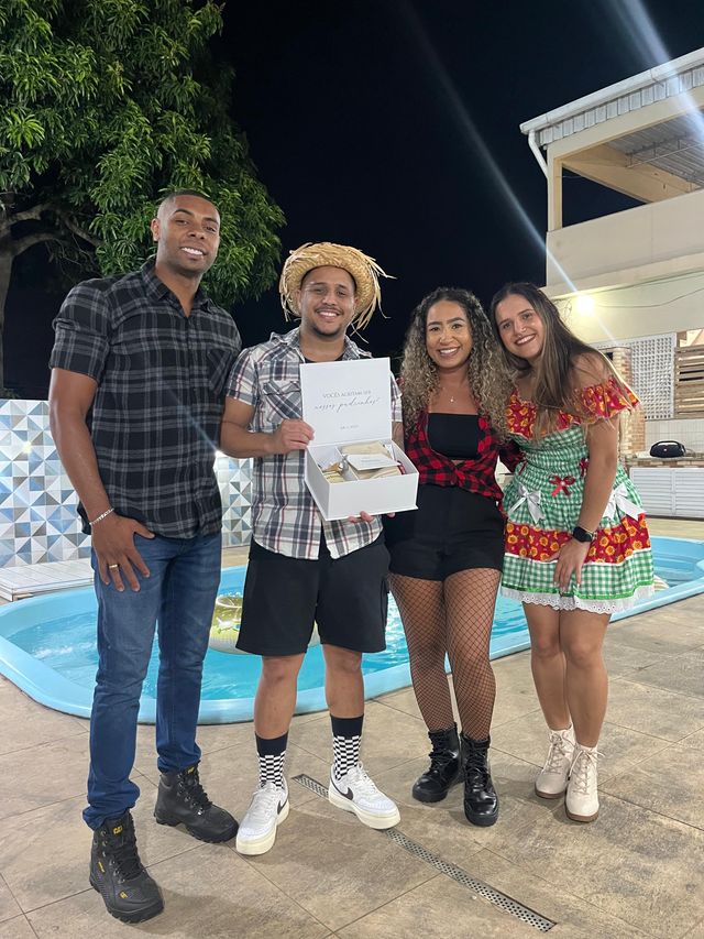 Para nossos queridos amigos,Desejamos as mais lindas bênçãos de Deus sobre a vida de vocês e sobre essa nova etapa que se inicia.Que construam uma família repleta de amor, paz, união e alegria.Ficamos muito felizes de fazer parte deste momento tão especial e, em breve, celebrar juntos o amor e o casamento de vocês. 💍✨